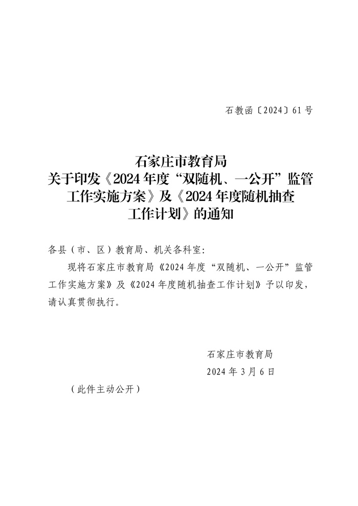 新澳门六合彩开奖 关于印发《2024年度“双随机、一公开”监管 工作实施方案》及《2024年度随机抽查 工作计划》的通知