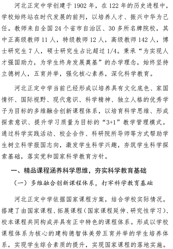 推进科学教育革新,创新科学人才培养——河北正定中学科学教育纪实