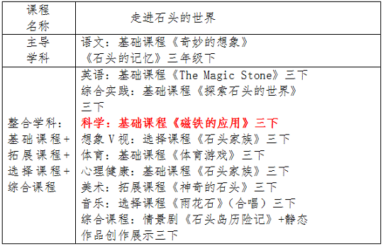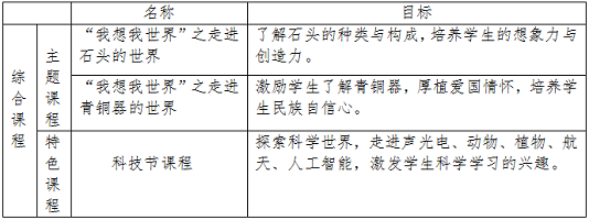综合课程是学校的特色课程,对接学校跨学科的“我想我世界”主题整合课程群和科技节课程。