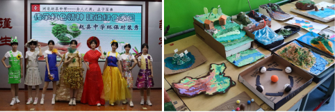 地理学科节中,赵县中学师生自主设计,大胆构思,将废旧的物品变成了靓丽的时装。