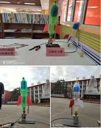 物理航模制作及展示活动也是学生们的最爱。学生们化身火箭建造师,用生活中简单易得的碳酸饮料瓶,自己设计、制作水火箭。作为一项简单而有趣的科技项目,水火箭不仅可以帮助学生们理解火箭飞行的原理,还可以在制作中培养学生们的动手能力、创新思维和团结意识。
