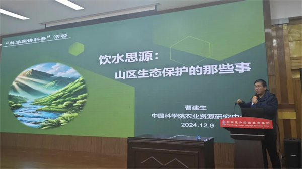 近日,一场以水资源保护与利用为主题的地理科普讲座在石家庄外国语学校成功举办,高中部地理组教师及高一、高二年级学生参加了本次活动。本次讲座邀请了中国科学院遗传与发育生物学研究所农业资源研究中心三位知名地理与水文领域的专家沈彦俊、张玉翠和曹建生教授,分别以“保护地下水:揭示看不见的真相”“用好每一滴水:作物用水效率的秘密”和“饮水思源:山区生态保护的那些事”为题,为同学们带来了精彩纷呈的学术盛宴。